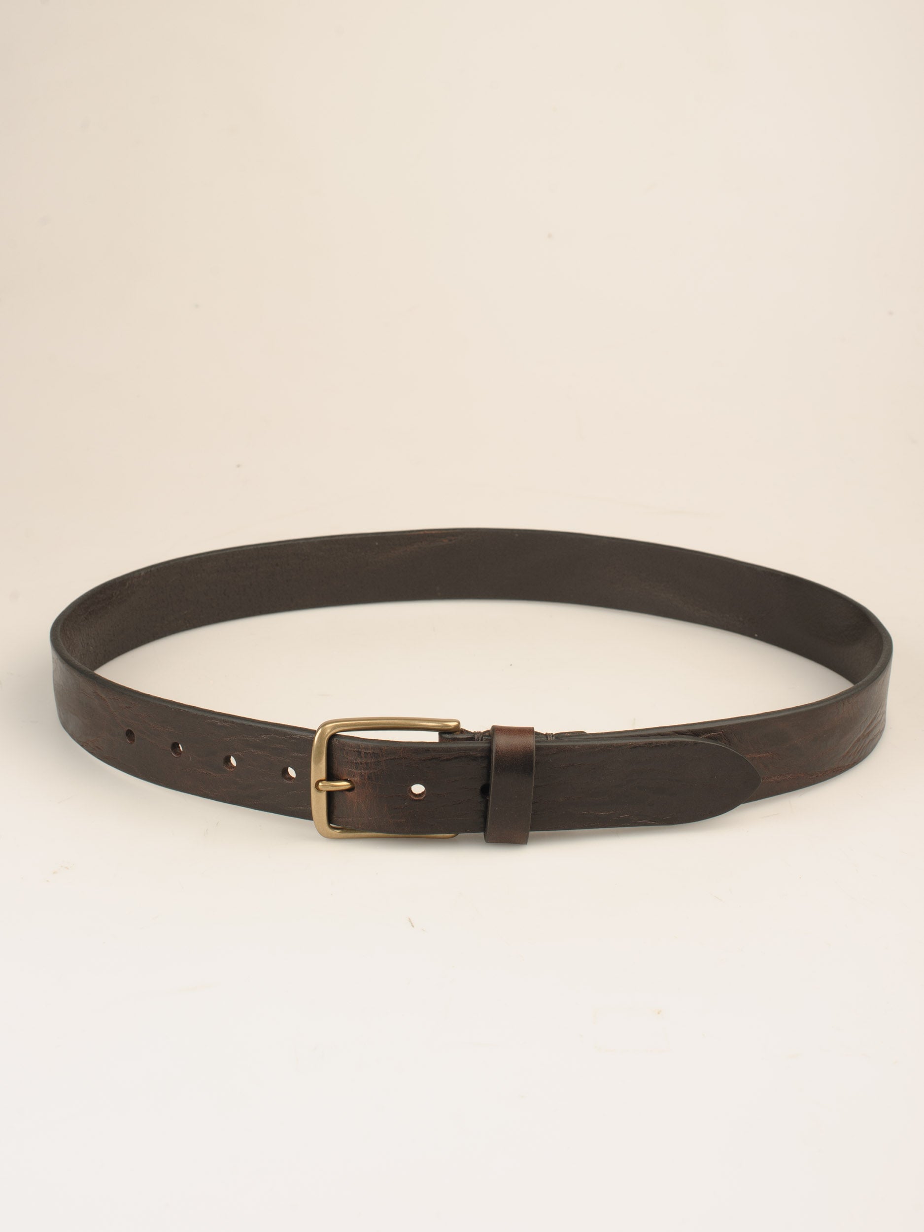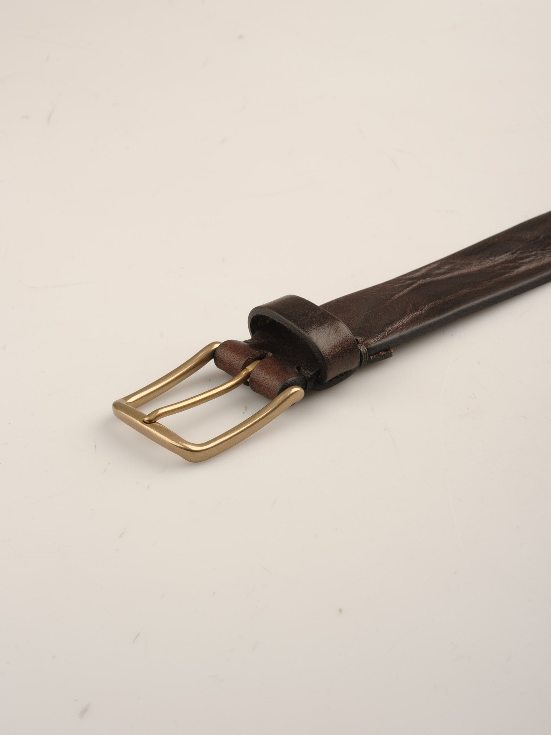 Dette bælte fremstiller vi i samarbejde med en lille italiensk familievirksomhed. De skærer de hele huder op til remme, og med en særlig varmeteknik giver de kanterne en flot rustik finish, som står godt til bæltets vintage udtryk.