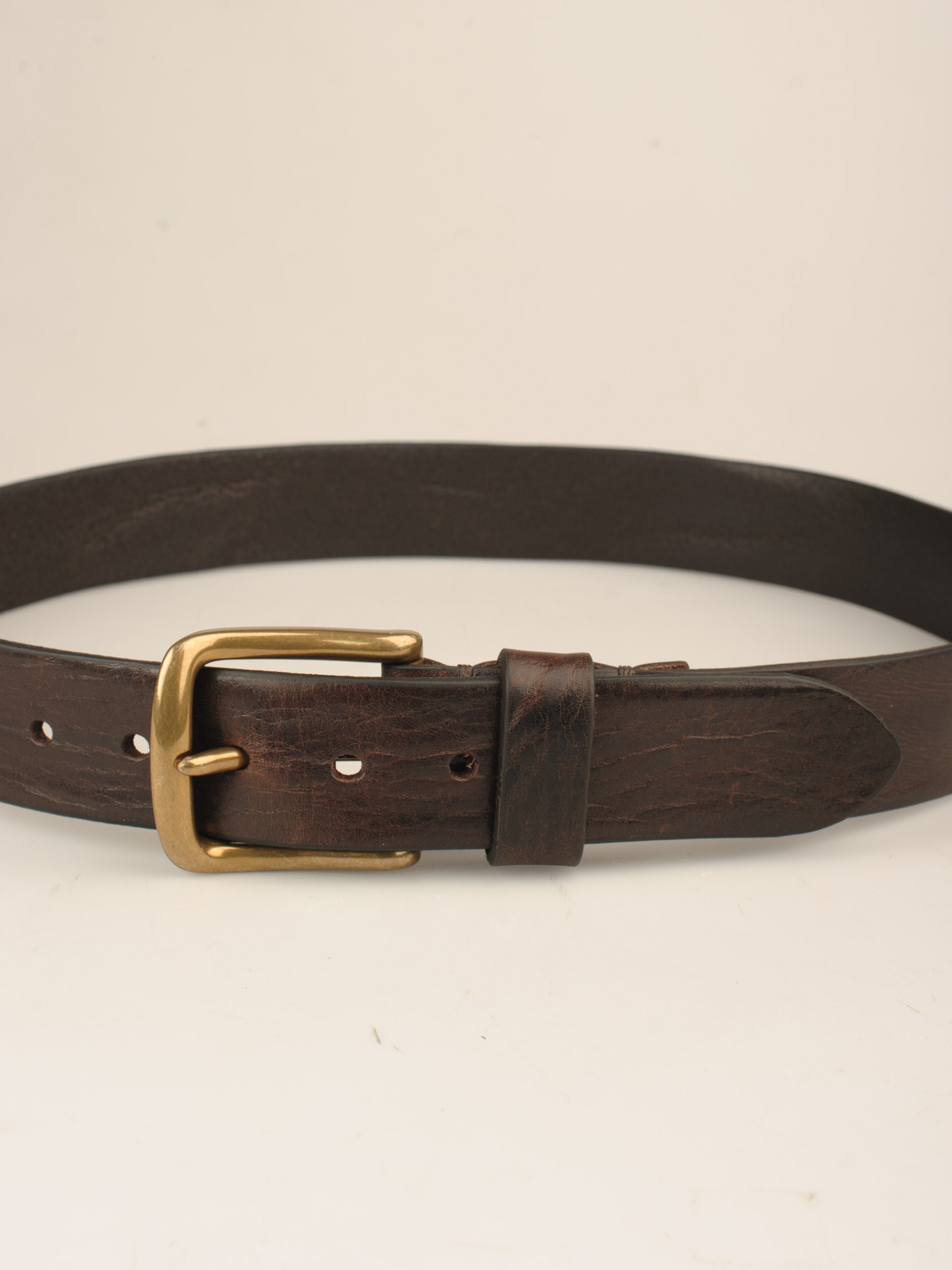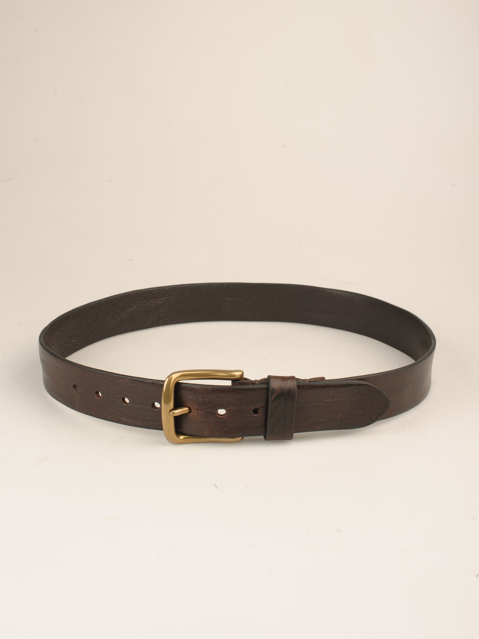 Dette bælte fremstiller vi i samarbejde med en lille italiensk familievirksomhed. De skærer de hele huder op til remme, og med en særlig varmeteknik giver de kanterne en flot rustik finish, som står godt til bæltets vintage udtryk.