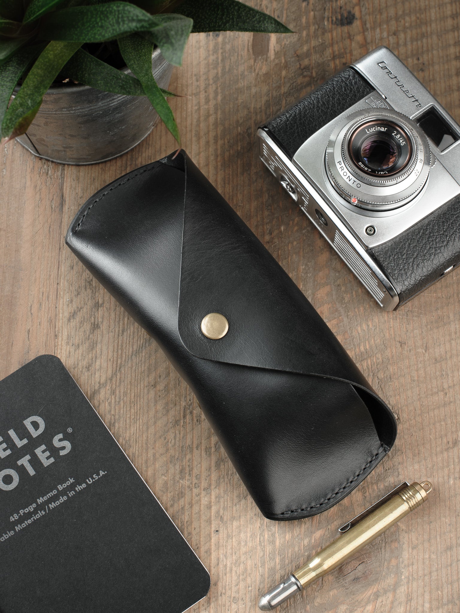 Etuiet er lavet af vegetabilsk garvet kernelæder.