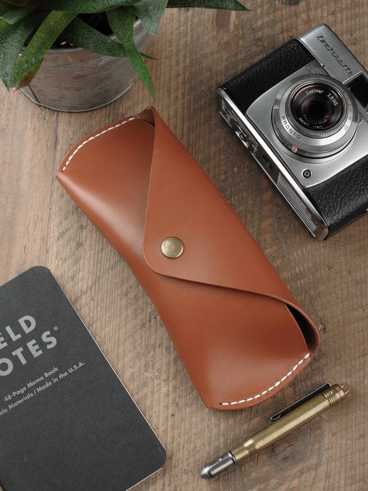 Etuiet er lavet af vegetabilsk garvet kernelæder.