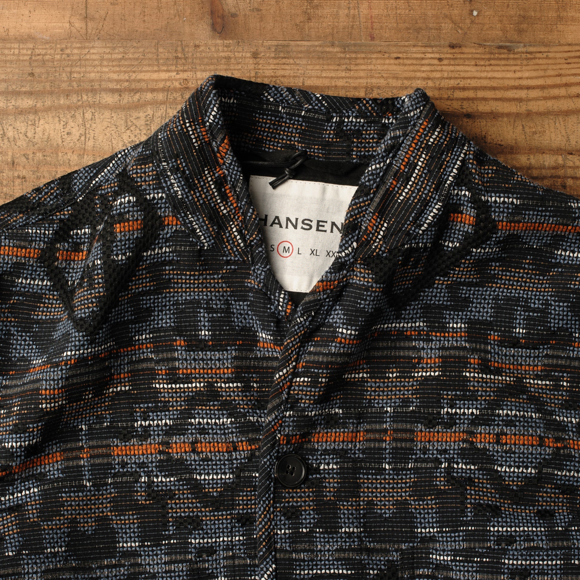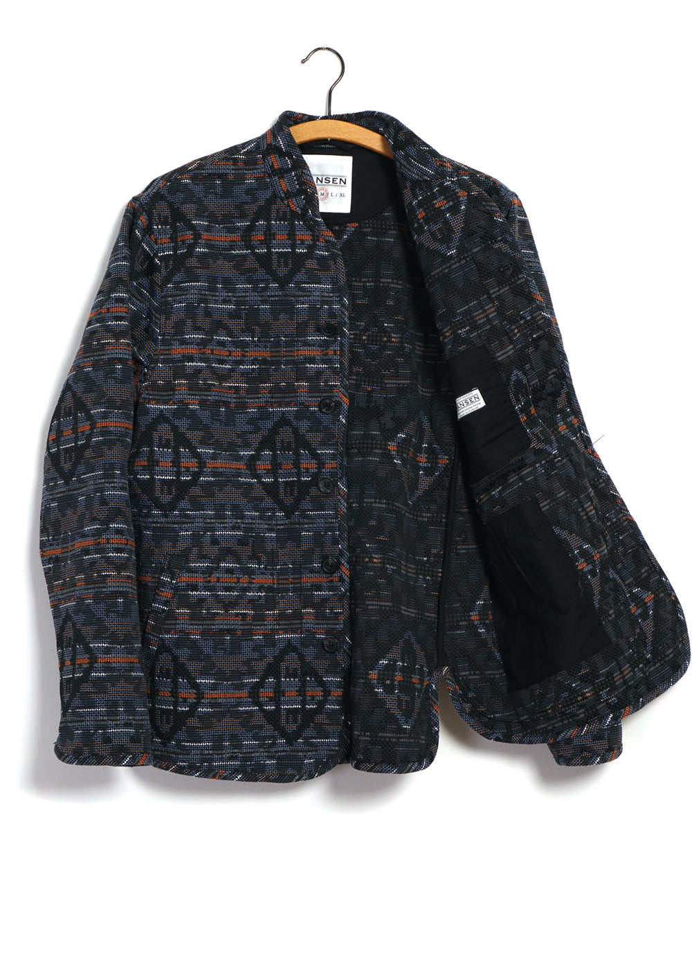 Denne geometrisk mønstrede ERLING jakke fra Hansen Garments er en signaturfavorit med et vintage touch. ERLING jakken er en inspireret arbejdsjakke med fokus på afrikanske kunstfærdigheder og med komfort i højsædet.