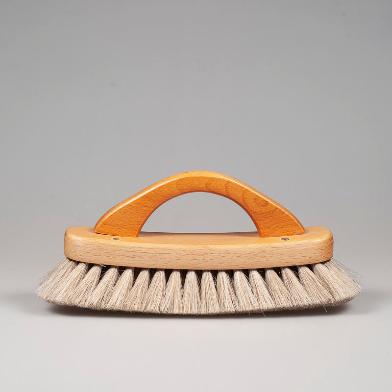 Fin og traditionel håndbundet børste, med fine detaljer og et let svaj, som gør den behagelig at benytte.