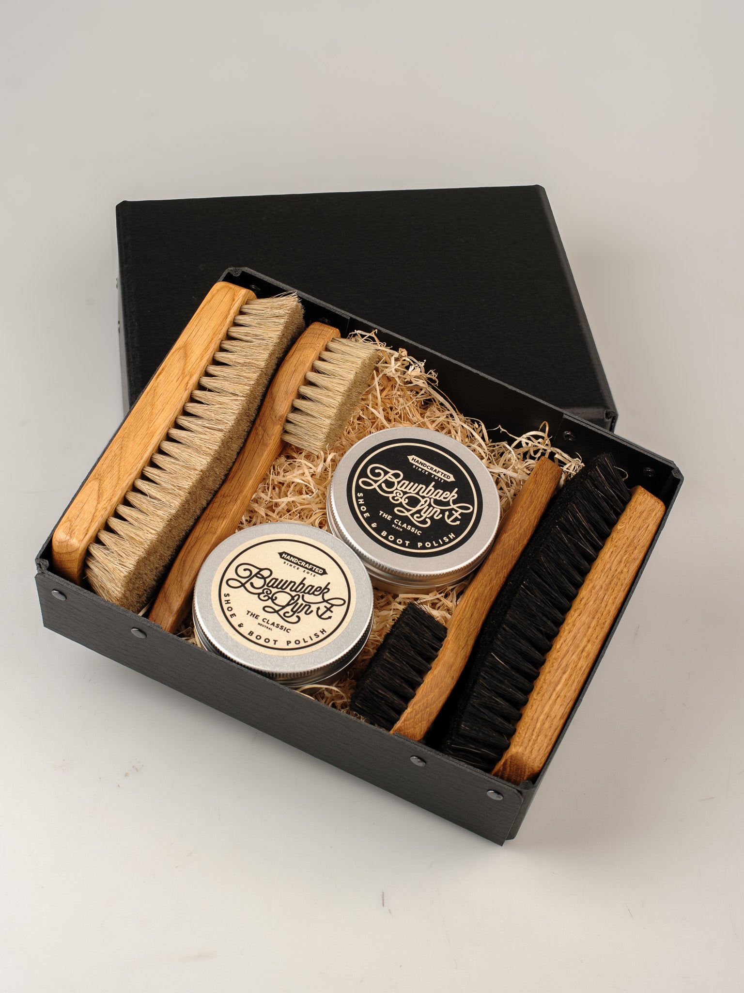 Leveres i lækker og solid håndlavet æske fra Vestergaard Æsker, som også fungerer som god og æstetisk opbevaring af pudsegrejet.