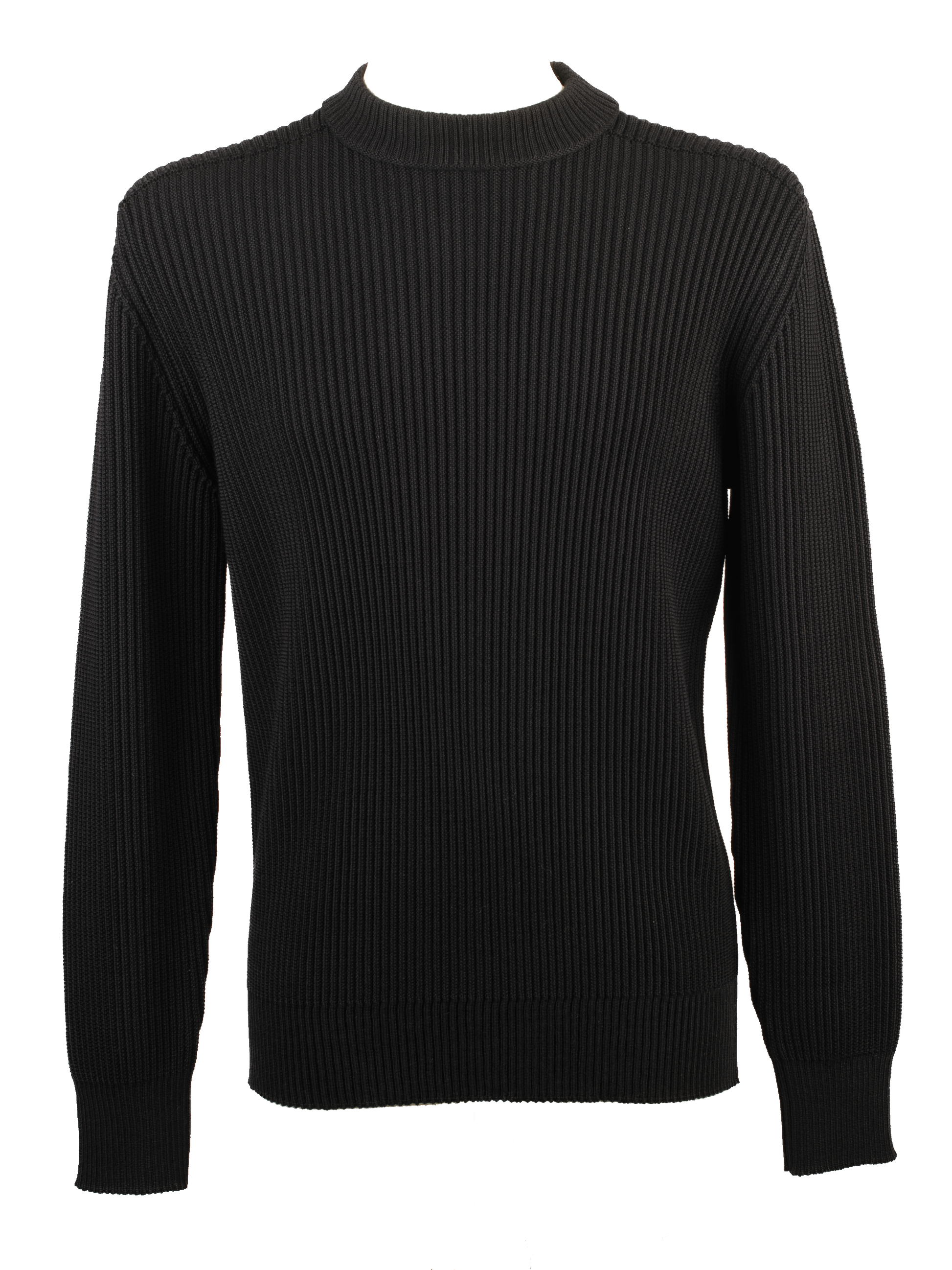 Fender rund hals. Tætstrikket elastisk plated-struktur. Fin merino belagt med ren ny uld for styrke og formstabilitet. Fully fashioned-detaljer og en let hævet skulderlinje.
