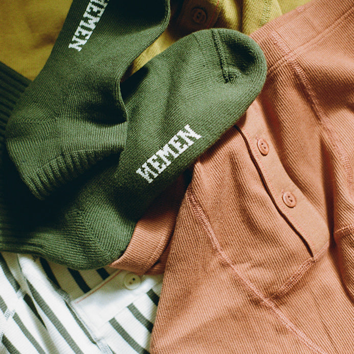 Rib-sportssokker i økologisk bomuld. Kraftig bouclette-sål for ekstra komfort. Fremstillet i Frankrig.